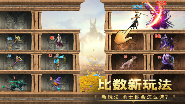 2. 一键消除操作反复进行,助力英雄对抗BOSS,在第三场赛事里升级技能并击败BOSS。