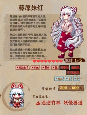 蘑菇:素/鲜/菌类【兽道露水采集几率获得、香霖堂几率贩卖、神社采集获得】