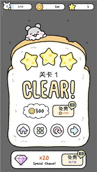 成功通过关卡后,系统会依据你的表现给予1到3颗星星作为奖励。你所积累的星星能够用来扩建仓鼠的小屋,也可以购买各种家具。