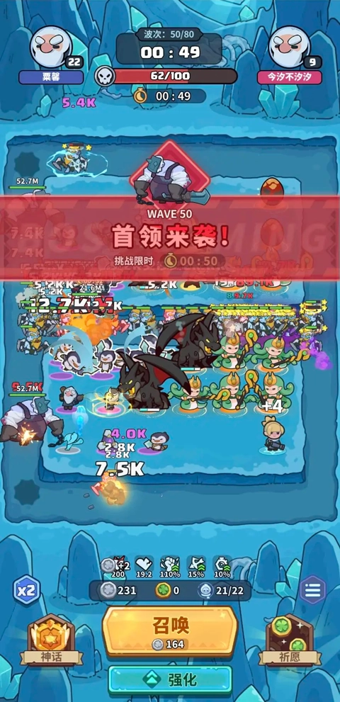 等两边加起来1个天使1个龙的时候稍微升级一下传说英雄等级,然后50关后留一组猎手,50~60一倍速操作合成天使,卡位置就把最后一组猎手卖掉。