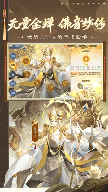 本次更新后,满足条件的斗战胜佛消耗金将碎片即可进行六识-眼见喜培养;随着培养进度的提升解锁神将第四格法术位。