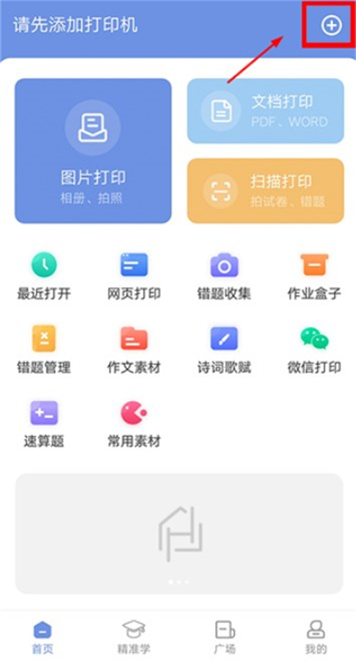 1、打开汉小印,点击+以添加打印机。