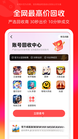 2、助力用户快速完成账号的发布与查找操作,支持一键式购买及出售流程,确保交易过程简便高效。此外,还提供账号回收服务,协助用户轻松处理闲置账号。