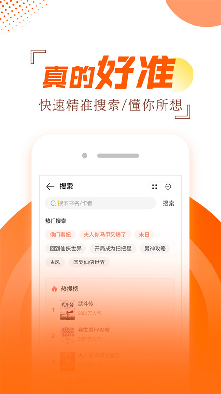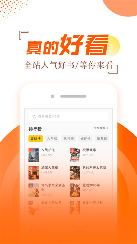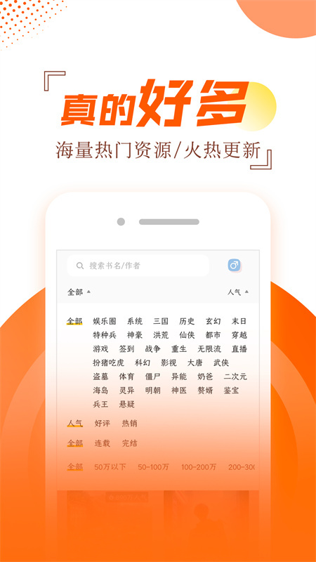 多样化的阅读功能可满足用户的观看需求,输入作者名或书名,即可查找相应的优质资源。平台几乎收录了各大网站的热门高人气小说,用户还能查看详细的评分及简介信息。