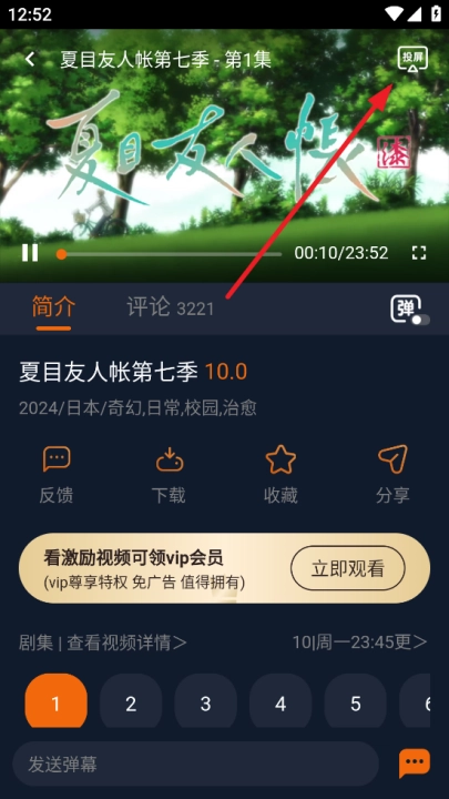 3、接着进入动漫的详情页,点击某一集开始播放,此时页面上会出现【】选项。