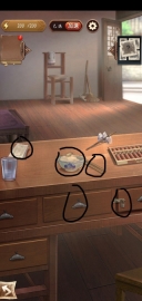 2、点击桌面下方的锁,能够获取抽屉上的锁以及中间抽屉里的一叠汇票。同时,在桌面上还能找到借据、一双竹筷和一碗白饭。