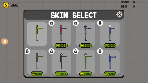 9. 在“SKIN SELECT”界面,能够挑选不同的角色皮肤,像蜘蛛侠、蝙蝠侠风格之类,有部分皮肤要耗费金币才能解锁。