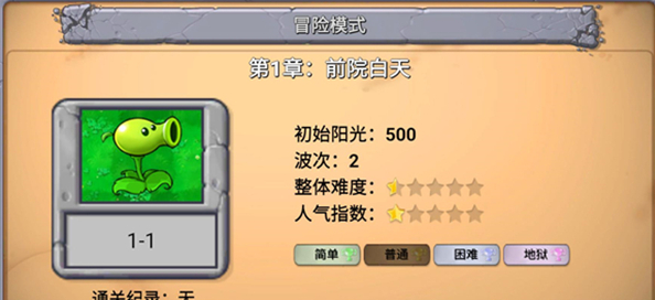 完整的原版冒险模式:包含所有原版关卡和世界,如白天、黑夜、泳池、雾夜、屋顶等。