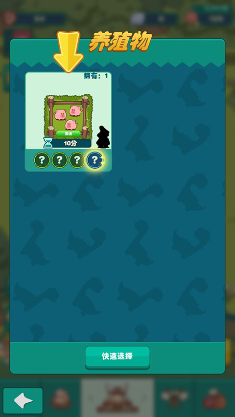 4、选择需要养成的动物,点击快速养成。