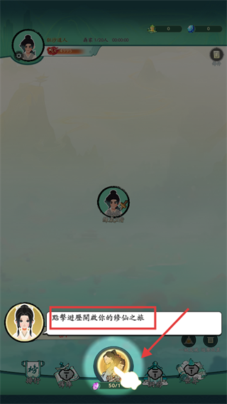 2、点击下方【游历】按钮,开启修仙之旅,可触发剧情、获取机缘,推进角色发展。