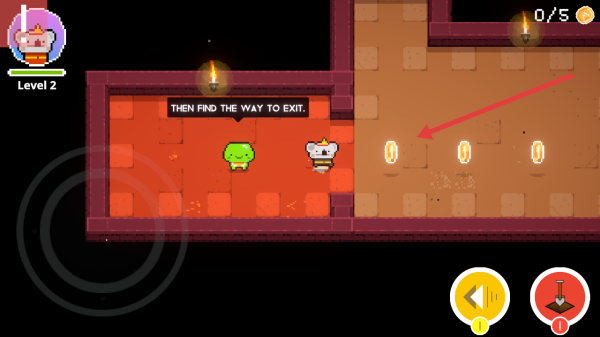 2、在Level2中,依照“THEN FIND THE WAY TO EXIT”的提示,引导角色移动,收集5枚金币。过程中要避开场景中的障碍,直至达成收集目标。