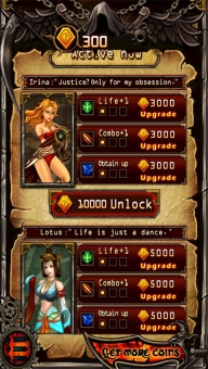 5、游戏内共有4个角色,分别是Talos、Irina、Lotus和Cirk。初始角色设定为Talos,而另外三个角色需花费一定数量的金币来解锁,这些金币可在游戏过程中获取。每个主角都具备独特且华丽的攻击特点,战刃、魔法、暗器等攻击方式一应俱全。此外,游戏里还有各式各样的趣味道具与技能,助力你冲击更高分数。