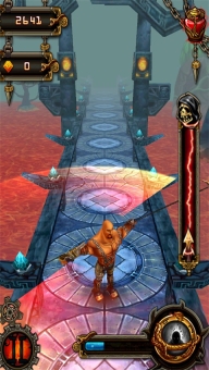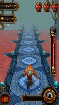 2、通过挥击、转弯、跳跃和滑动等动作,巧妙躲过障碍物,同时收集硬币,用这些硬币购买能量,来瞧瞧你究竟能跑多远!