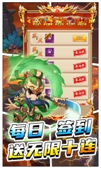 这款游戏操作简便,福利丰富,体验感十足,画面风格精美,上手轻松。玩家在游戏里不仅能获取大量福利,还能通过强化武将提升战力,战胜强敌,取得更高成就,非常值得尝试。