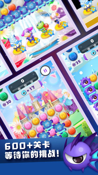 快来体验这款三消冒险游戏吧!解锁精彩故事,从外星入侵者手中拯救可爱星宠!