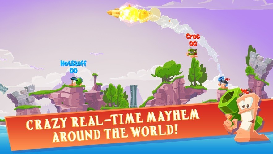 百战天虫4手游继承了前几部经典玩法,通过虚拟按钮控制角色进行移动,精准瞄准敌人方向开启攻击,游戏提供单人和四人对战两种玩法模式,不断提升战斗力,解锁新的武器和人物,参与各种挑战在不同的地图下享受魔性射击乐趣。