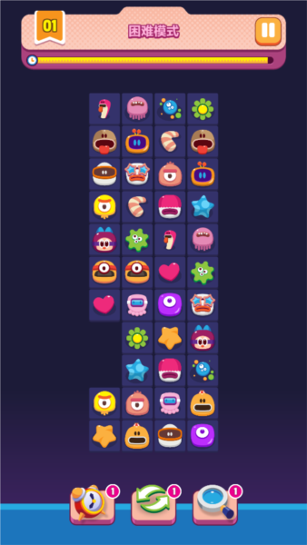 2、每个游戏的时间是有限的,你需要在有限的时间内快速找到相同的图片来消除它们。