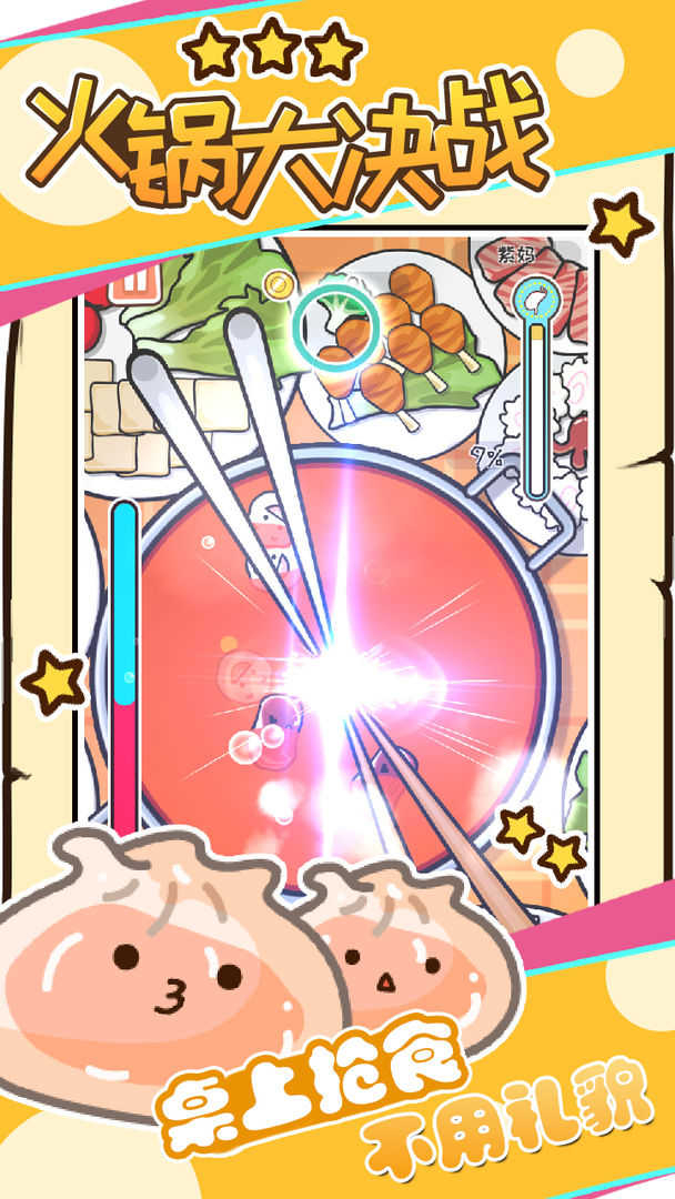 《火锅大决战》是一款休闲对战游戏,玩家需要收集各类食材,用筷子展开竞技对决,完成不同任务挑战。获胜后可抢夺更多食物,尽情享用专属火锅。对这类游戏感兴趣的玩家,别再犹豫,快来体验吧!