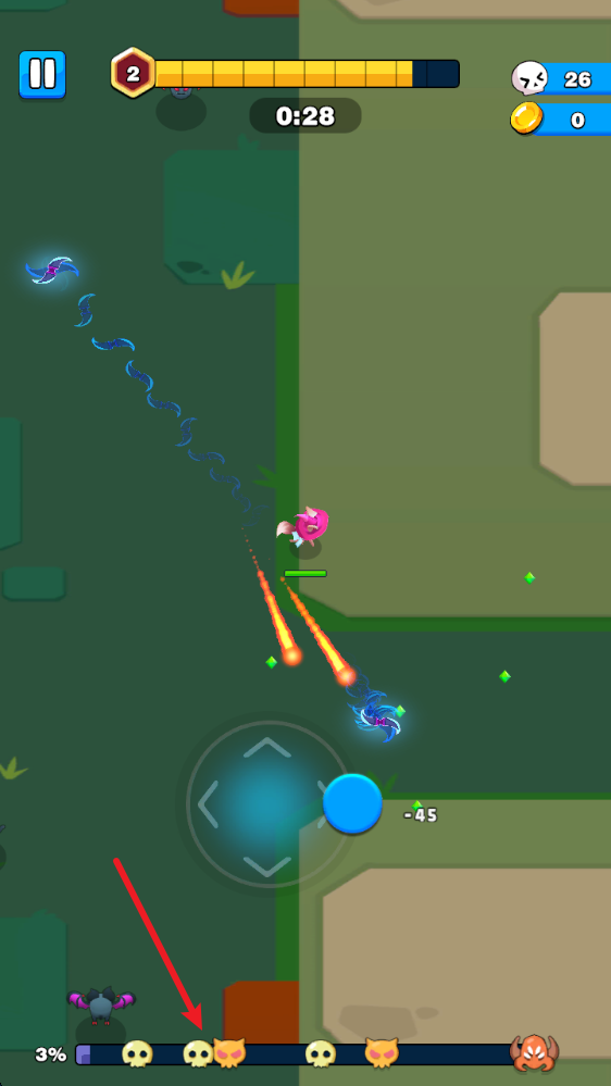 在游戏里,拖动屏幕就能移动角色,当怪物靠近时,角色会自动发起攻击。