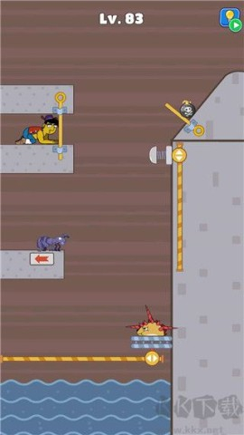 4、第六关,先打开中间的横杆,再放下上面的落石堵住水池,就能顺利通过了。