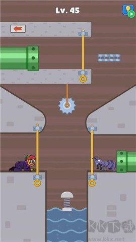 3、第四关的操作步骤是:先把横杆往左边拖走,接着将其中一个横杆快速往下拉——动作要迅速,不然可能赶不及在陷阱升起前通过。
