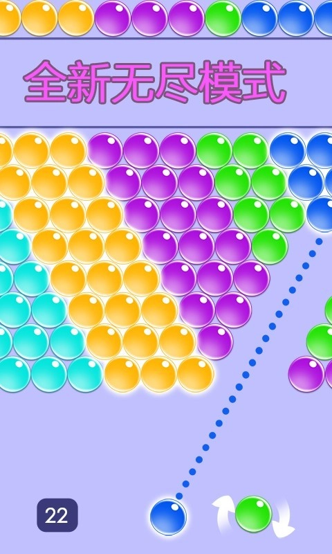 《无尽泡泡龙》是深圳市猎游科技有限公司开发的益智射击消除类游戏,设有丰富的关卡与多样的游戏模式及玩法。玩家操作简单,只需轻点屏幕选定射击方位,当三个及以上同色泡泡相连时,便会一同消除。达成关卡内所有泡泡的消除即可通关。该游戏包含无尽模式与经典模式两种核心玩法:在无尽模式下,玩家需清除当前页面的全部泡泡方可通关;而在经典模式中,则需要收集关卡内的皇冠才能完成通关目标。