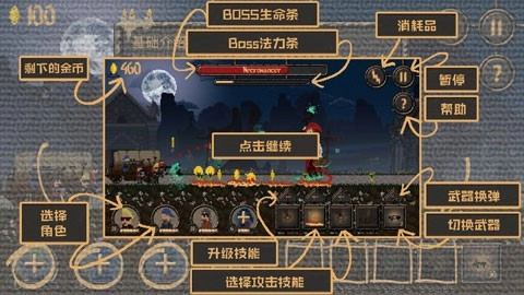 敌人总是从右侧出现,角色会自动发动普通攻击,对付数量较少的敌人时这就够用了,但要应对较多敌人还得依赖技能输出。