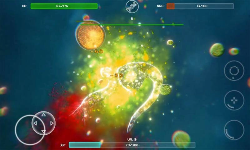 孢子的起源是一款简单有趣的休闲冒险游戏,英文名为Bionix: Spore Evolution Sim 3D,你在一个具有逼真单细胞生物的世界中生存。硅藻,纤毛,细菌,藻类,水合生物……它们会跟你抢夺食物,或对你发起进攻。通过吞噬和进化,你的生物将越来越强大。你可以看到微生物的一生是如何度过的,并操作它们完成整个基因突变的过程,加强它们的各项能力,成功的脱离母体,独立生存!