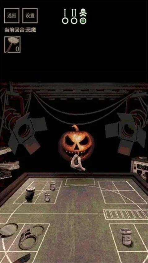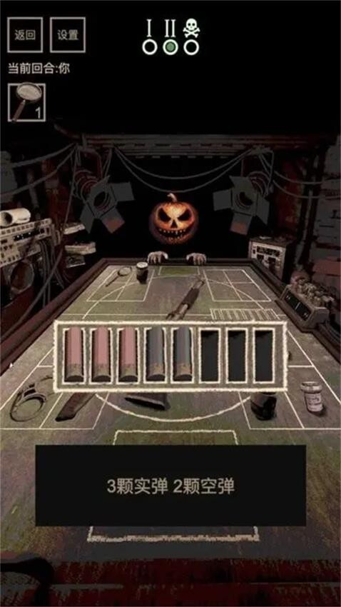 3、在每一轮游戏里,左轮手枪的弹巢中装有1颗实弹与2颗空弹,你需要决定是对着自己开枪,还是对着恶魔开枪。