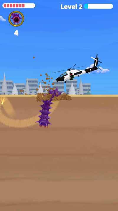 2、一条庞大的蠕虫正在发起攻击,你能够操控它极具破坏性的攻势,将地球上的所有事物都摧毁殆尽。
