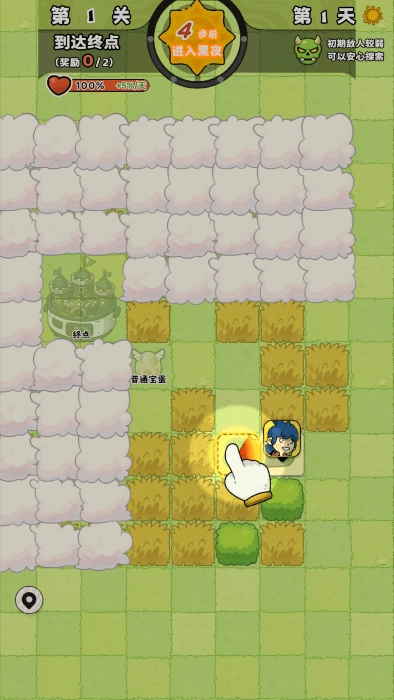 4、点击一个方格向前移动一步,直到获得前面的宠物蛋。