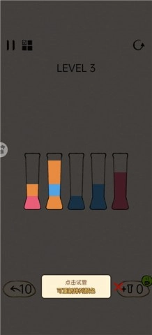 2、玩家不断努力拼凑液体,把每个试管中的液体正确分类,体验拼图的乐趣。