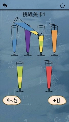 1、物理模拟系统使液体转移的每一步操作都呈现出真实的流动效果,并且保证只有当空间足够且颜色一致时,液体才能顺利倒入。