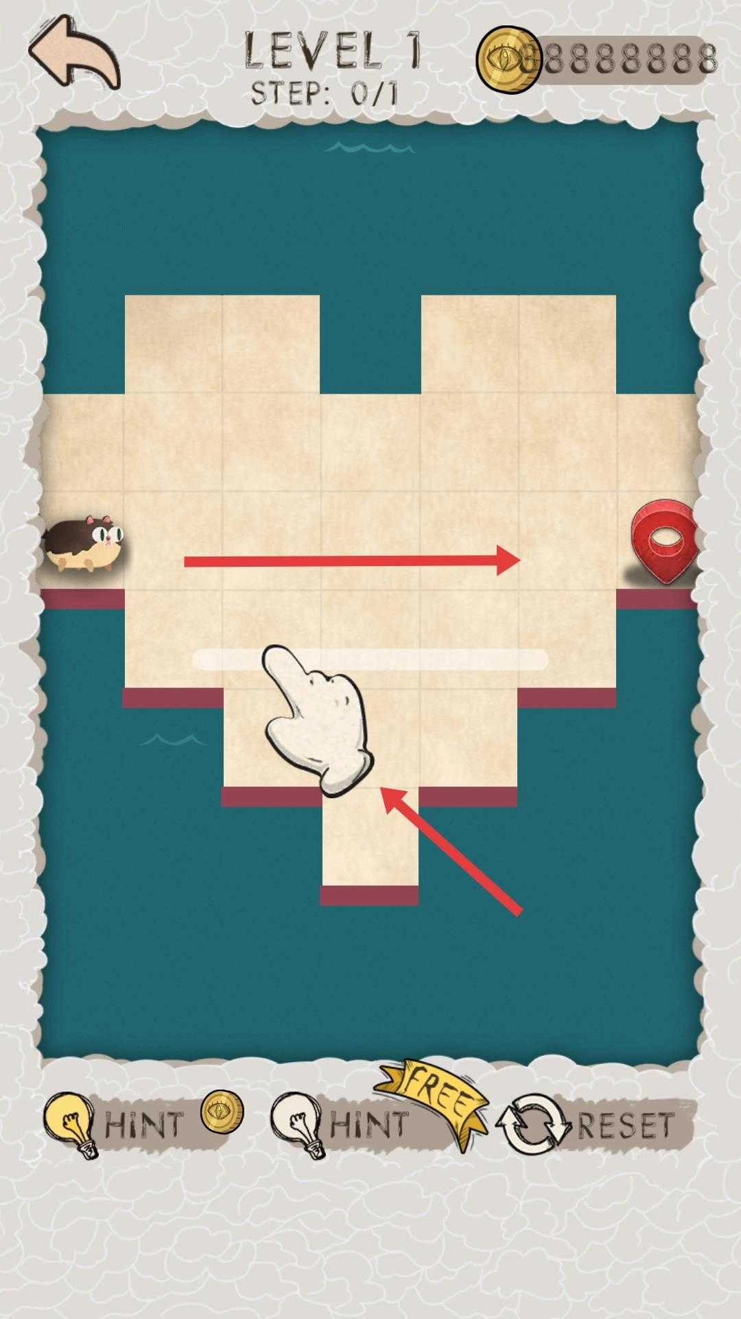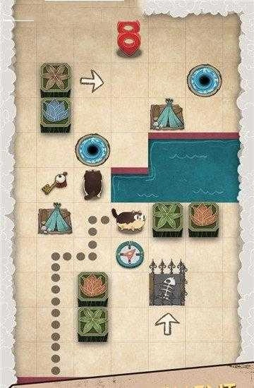 1、根据箭头的提示,通过划线的方式规划小猫的行进路线,为这只小动物开辟一条从当前位置向右延伸至红色标记点的通路,只要完成这一操作就能顺利通关。