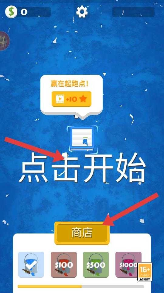 1、进入游戏界面后,会看到“点击开始”和“商店”两个按钮,你既可以选择点击“开始”直接启动游戏,也可以先进入商店查看,为接下来的游戏体验做些准备。