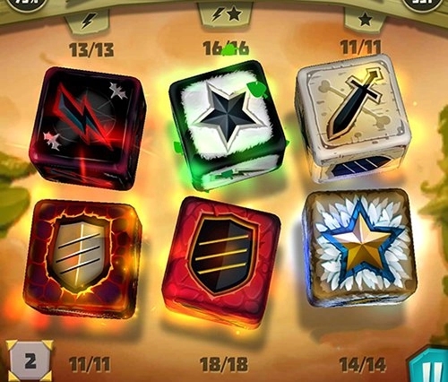 操作方面也十分便捷:玩家只需滑动屏幕即可投掷骰子参与战斗;初始拥有六枚骰子,不同的骰子面对应着普通攻击、能量充能、护盾生成等多样化效果;通过巧妙运用这些效果组合,逐步消灭关卡内的所有怪物,即可达成通关目标。