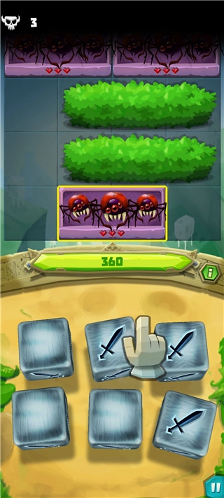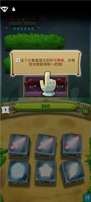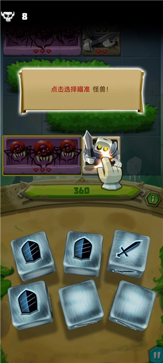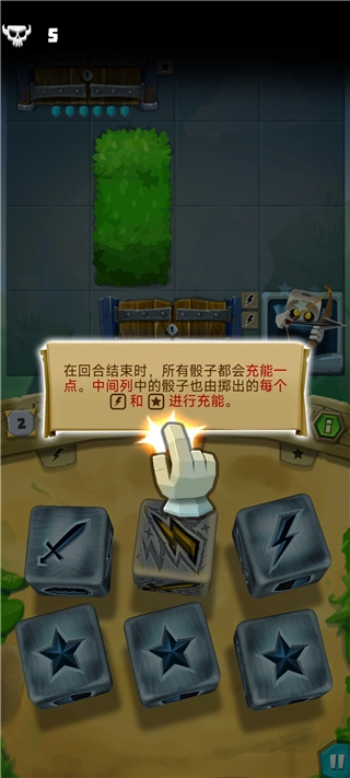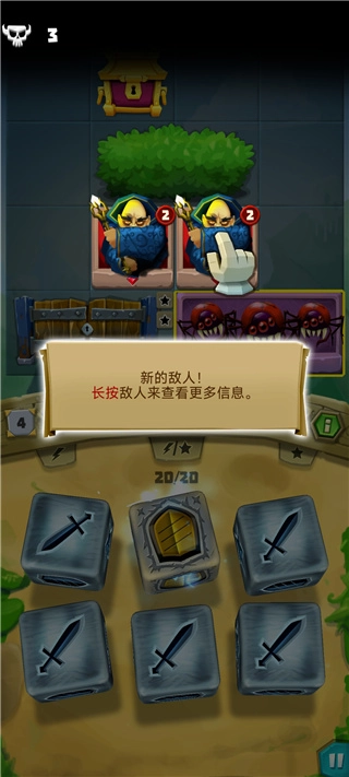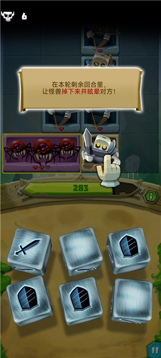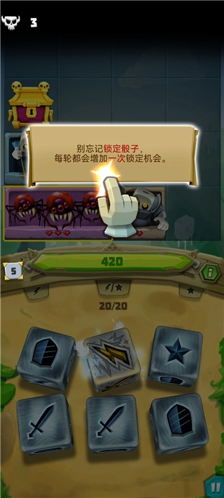 7、随着敌人数量增多,骰子会解锁新技能,而盾牌能吸收本轮敌方对你造成的所有伤害。
