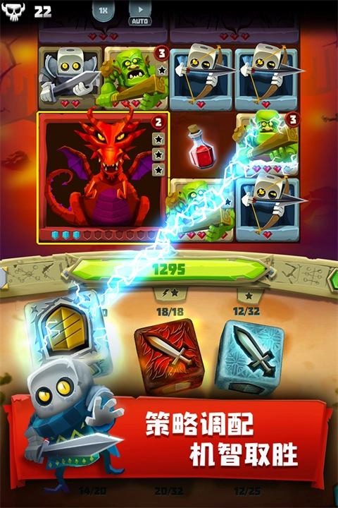 然后骷髅和火蜥蜴,骷髅能打6点伤害,蜥蜴4点伤害并晕眩4个,虽然和红龙比起来伤害少一些,但是胜在能量需求低,充能快,同时骰子面也均衡。