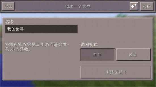 2、点击右上角“新”创建新的世界。