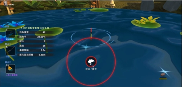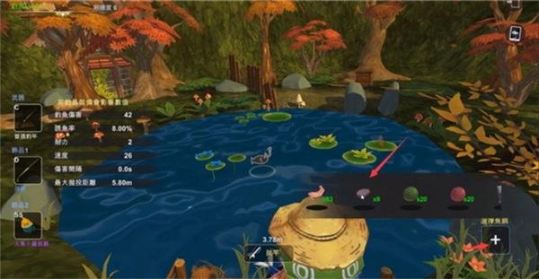 2、选择你钓鱼的抛竿点位,点击抛竿