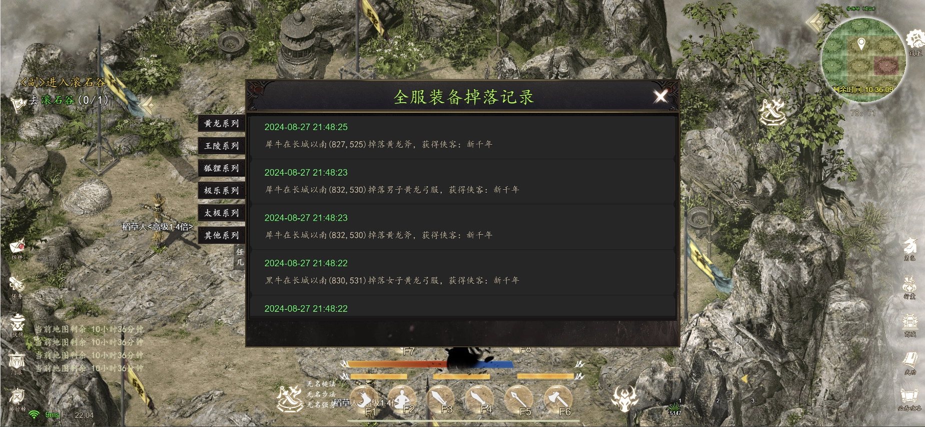 3、例:黄龙斧:掉落上限500个达到掉落上限后,全服所有怪物将不再掉落该装备,实时生效。