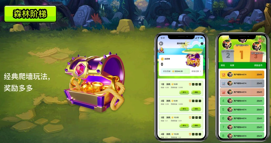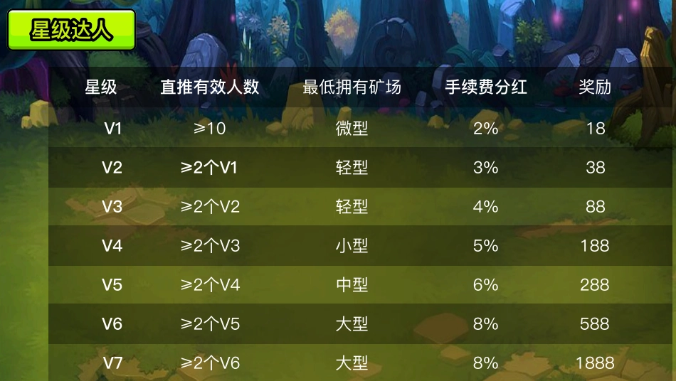 爬墙与开矿的收益规则:直接推荐可获得10%的收益;森林大逃杀的收益规则:直接推荐投入部分可获得2%的收益