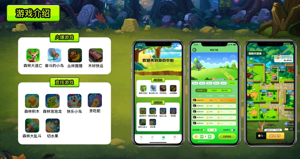 在赚金币的间隙,不如玩个小游戏放松一下吧!这里有多款经典耐玩的小游戏,像森林大桃鲨、奋斗的小鸟、丛林突围、森林积木、泡泡龙、贪吃蛇、切水果等,保证让你玩得停不下来!