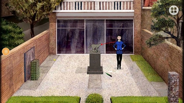 6、最后点击喷泉上的【猫】,女人会把猫抱到围墙上,这样本章节就通关了。