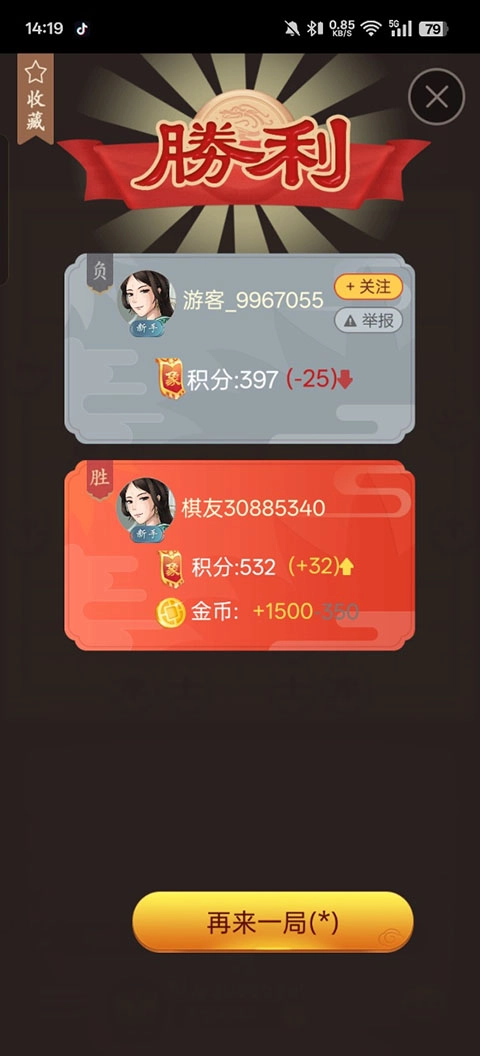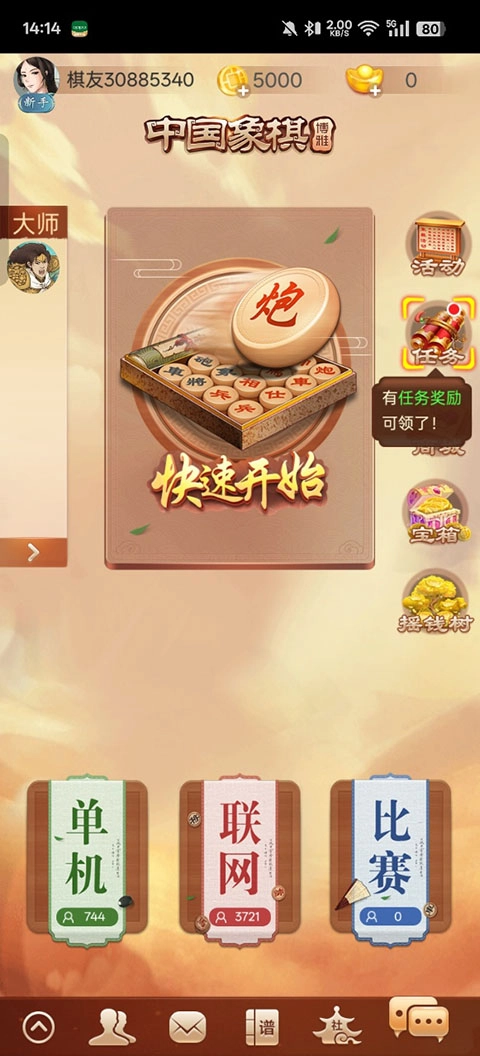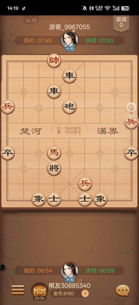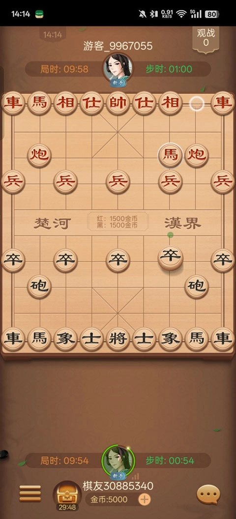 2、接着进行匹配,确定好金币赌注后就能开始下棋了。