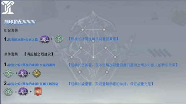 5、温馨提示:建议把增强冰伤的攻击刻印放在135号位,增加能量回复的辅助类刻印放在246号位,这样摆放的话,固定属性就能全部用来提升伤害啦。