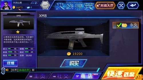 XM8是美国军方作战配备的轻型突击步枪,在《火线精英》手机版中,它作为高性能突击步枪的代表者,而且仅售19200金币!XM8最大特点为右键可开镜,提升射击精准度,同时由于其制作材料特殊,整个枪械十分轻便,特别适合跑图、走位,将对手击杀于无形之中。XM8的灵巧便捷也成为许多玩家打生化模式的首选步枪,除了射速快,上弹较迅速外,枪的重量小使得在对抗生化母体时,移动力更强,助你轻松逃脱魔爪!
