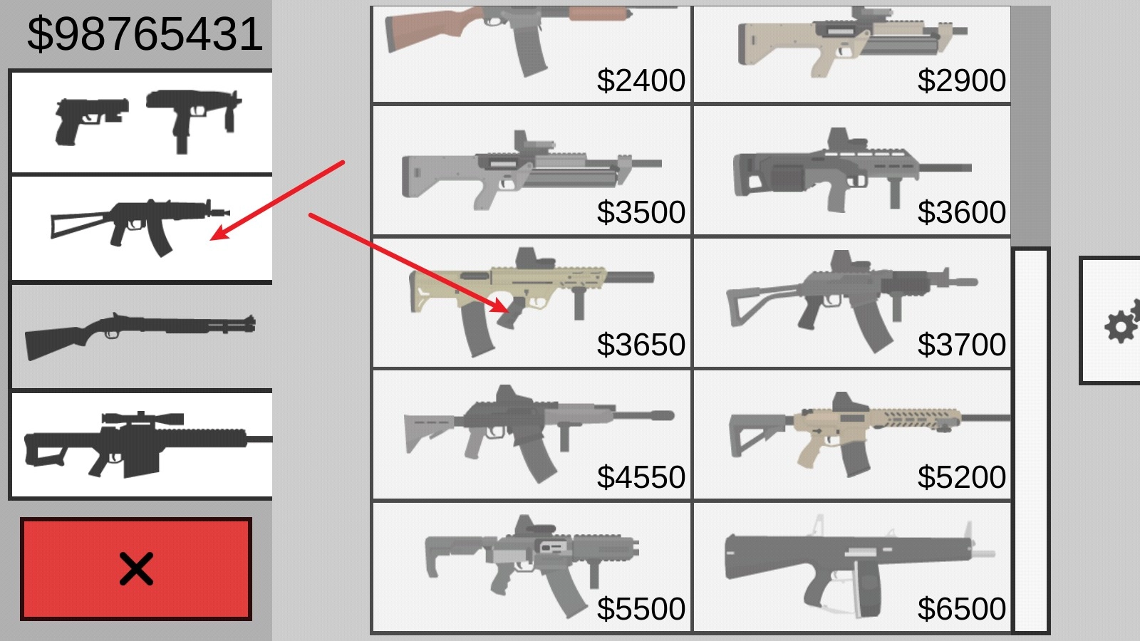 进入商店后,左侧区域能浏览各类枪械,若有看中的武器,点击该武器即可。