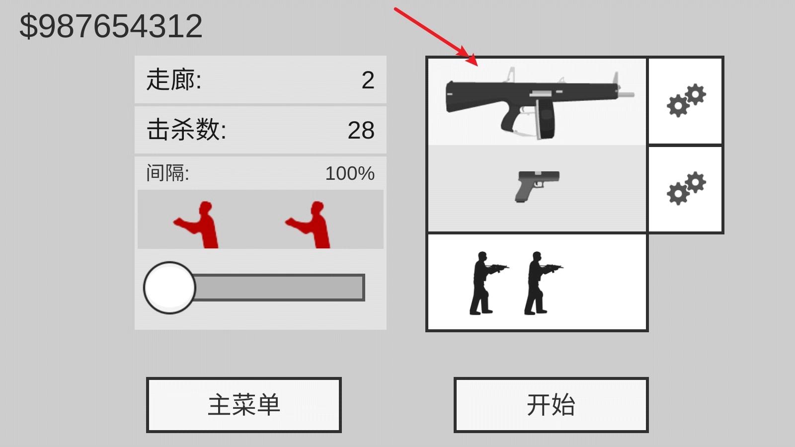 2、接下来是战斗开始前的准备环节,你可以更换枪械或子弹,也能调整僵尸出现的频率。