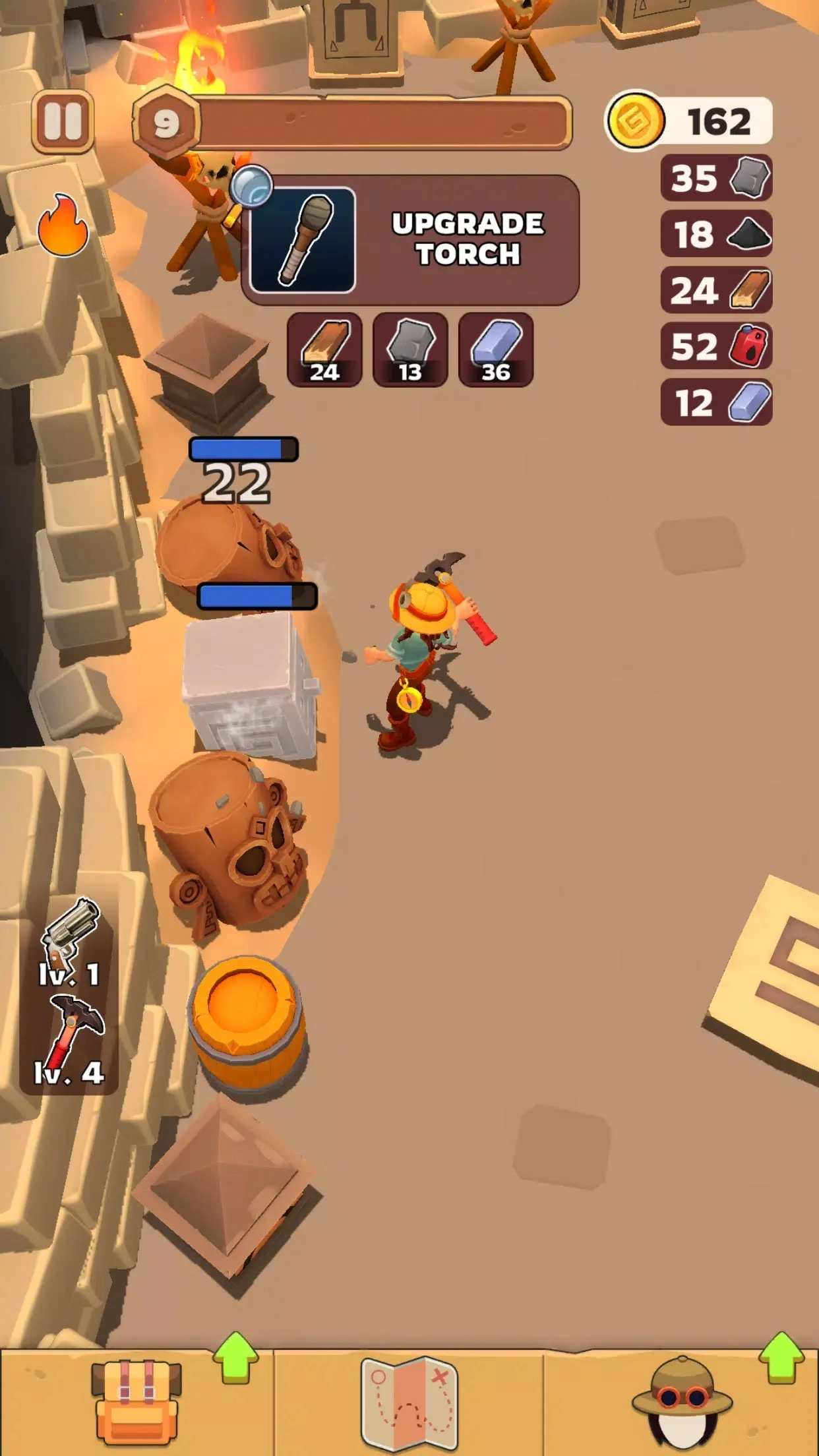 粉碎和农场!用镐打破障碍和文物以收集资源。